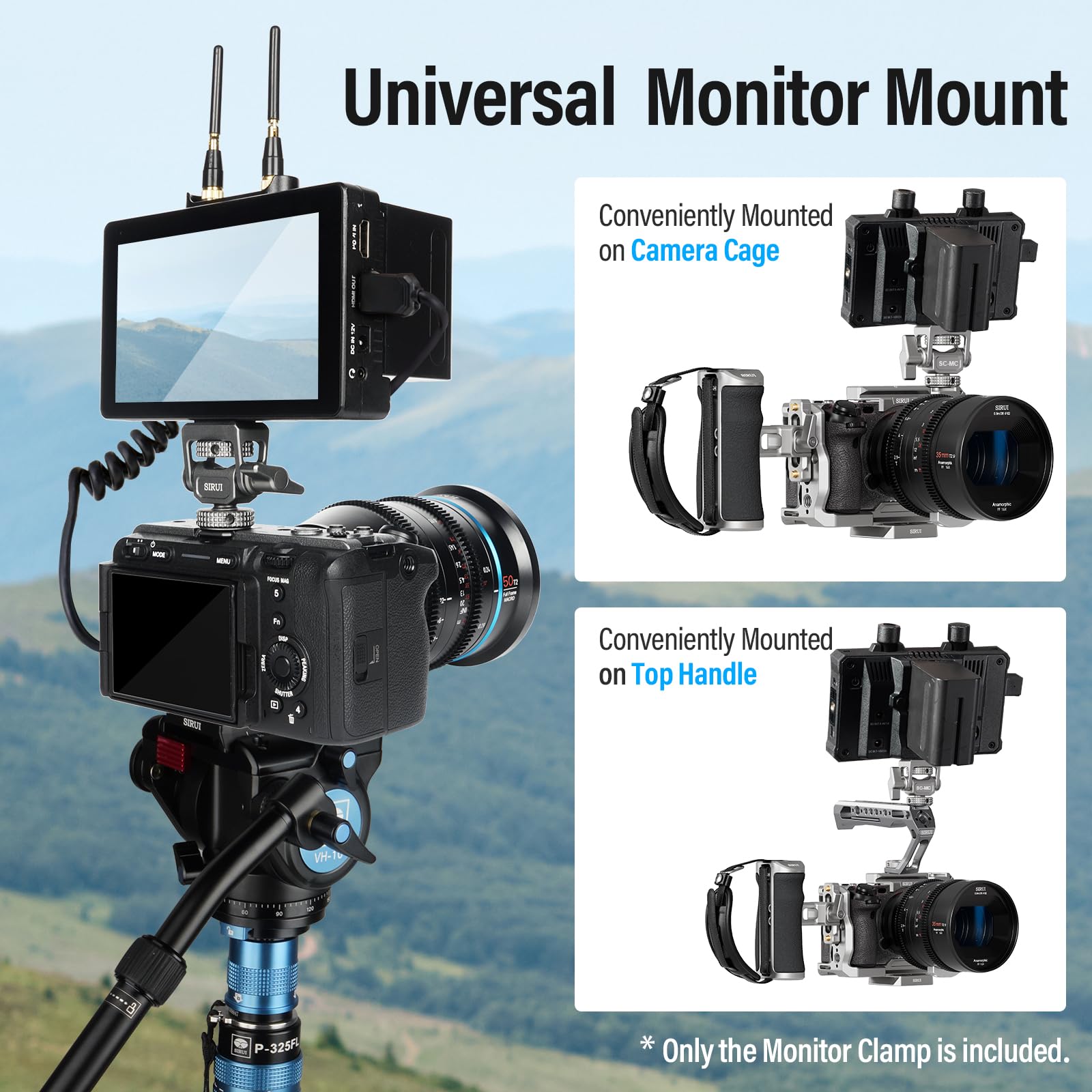 SIRUI Camera Monitor Mount with Cold Shoe, Swivel 360°and Tilt 180°Adjustable DSLR Field Monitor Mount, Compatible with 5" and 7" Monitor, SC-MC