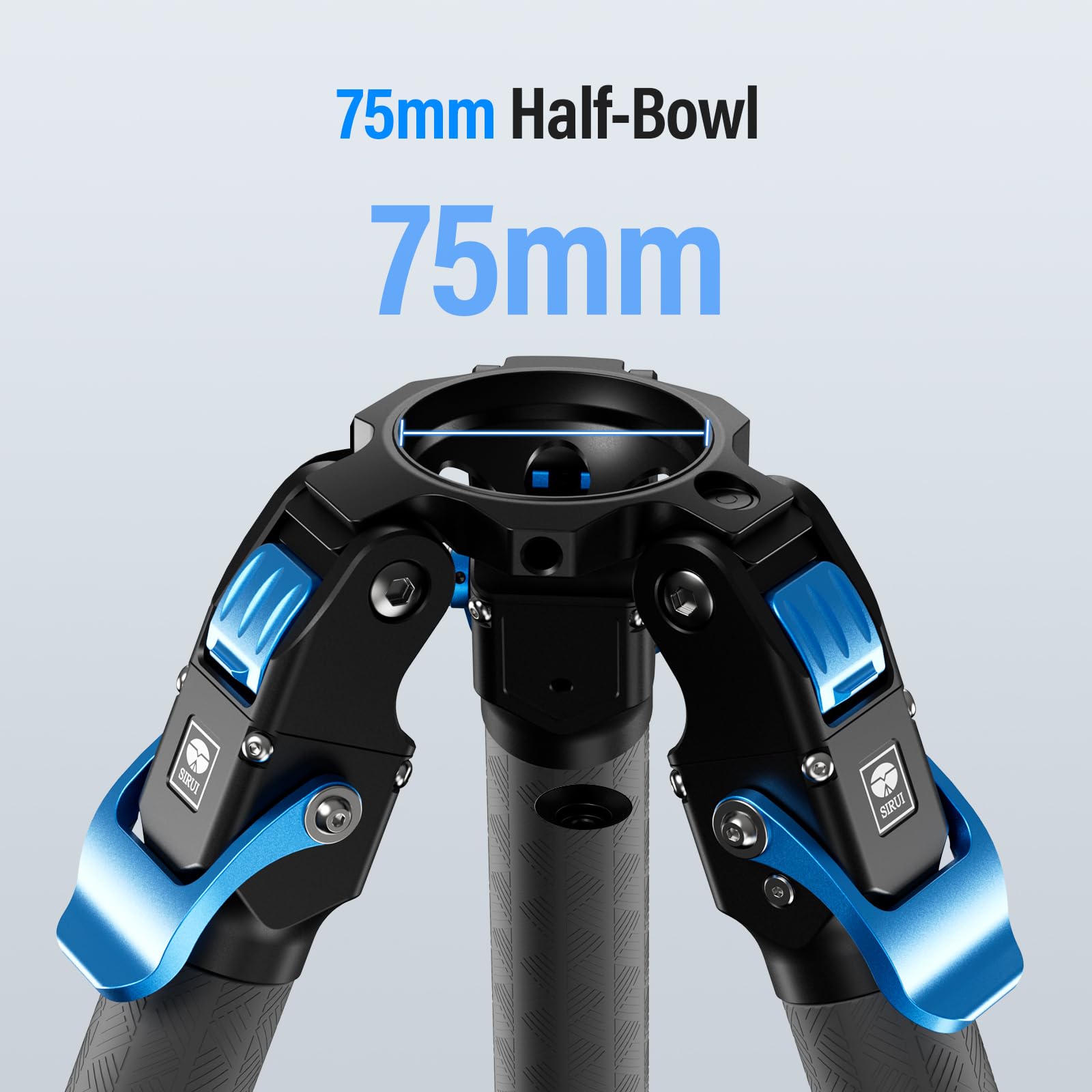 SIRUI SVT75 Lite Carbon Fiber Video Tripod, 8.3"-60.2" Height, 25kg/55.1lbs Load, 3-Buckle One-Step Adjustment, 75mm Half-Bowl, Removable Feet for DSLR Camcorder Cinematic Filming